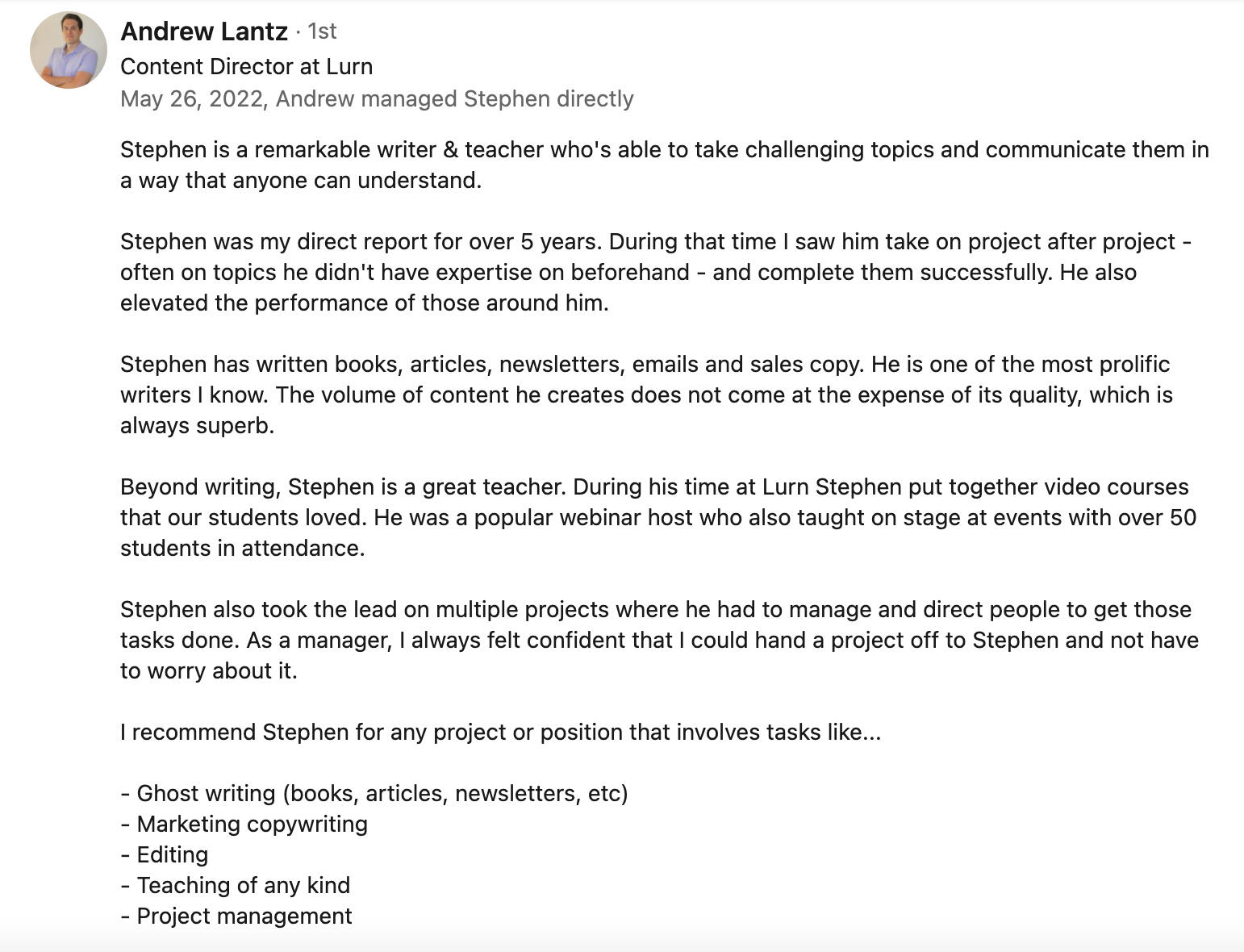 Here's what people have said about my work...